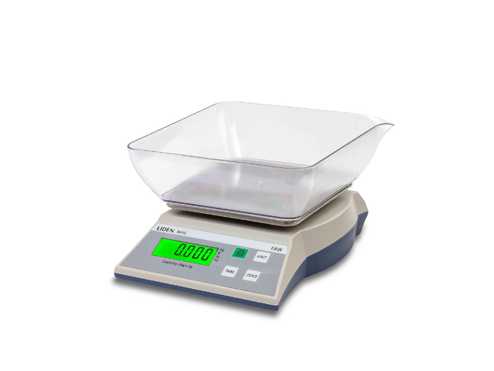 Bordvægt FAW-6 Lidén til generel vejning i tørre miljøer. Kapacitet 0.6 kg x 0.1 g. Vægbeslag af rustfrit stål. LCD-display med baggrundsbelysning. Batterifunktion som standard og adapter som tilvalg. Plastskål som tilbehør.