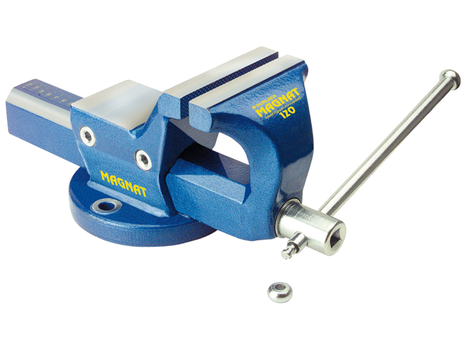 • Kvalitetsskruestik MAGNAT, sænksmedet, hærdet og brudsikker. Med justerbar føring. Ekstra stor spændevidde. Stor ambolt til rette- og stukarbejde. Riflede og hærdede kæber. Med beslag til svingbare/udskiftelige specialkæber