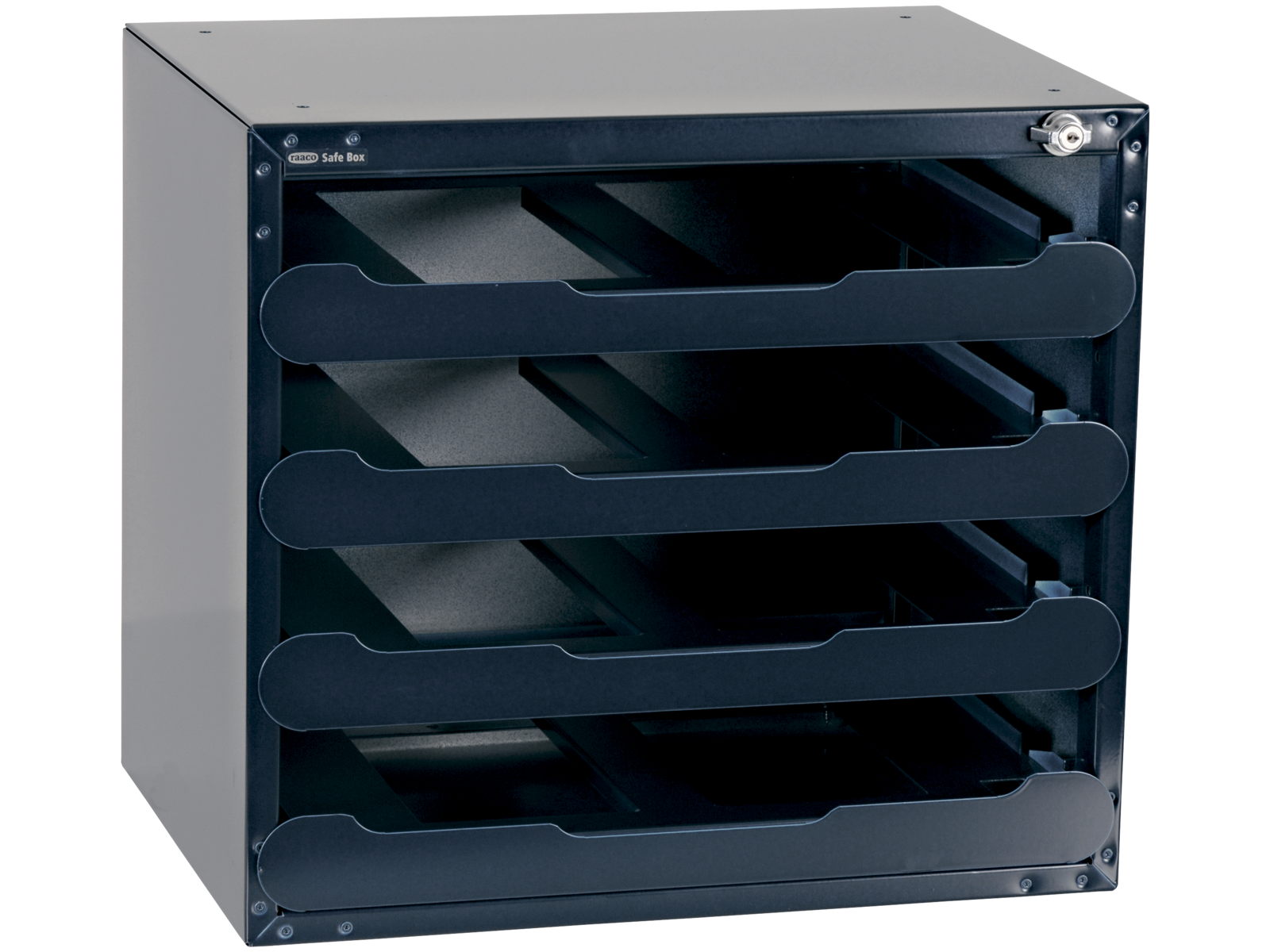 Kabinet til opbevaring af 4 stk. CarryLite 55. Vælg mellem tom eller med 2 stk. CarryLite 55 5×10-25/1 og 2 stk. CarryLite 55 5×10-25/2. Forsynet med teleskopskinner som letter adgangen til indholdet.