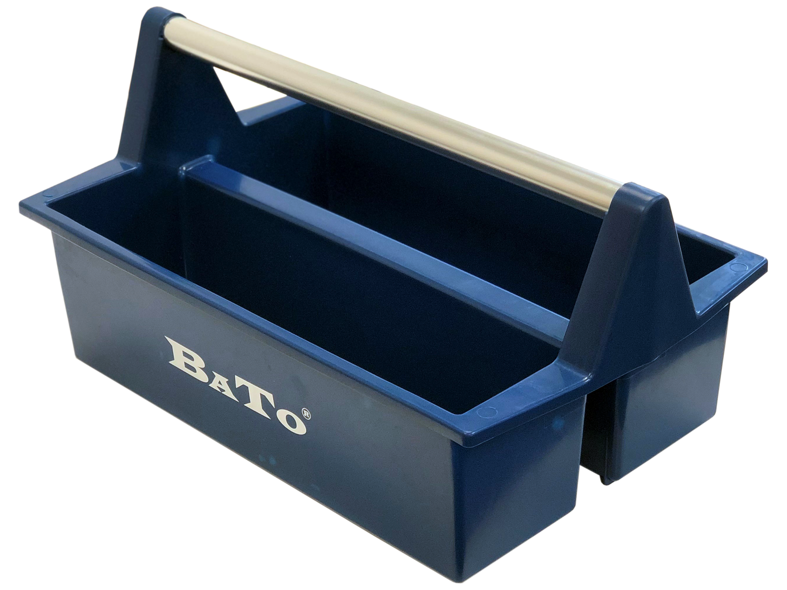 Åben plast-værktøjskasse med to rum og alu-hank.