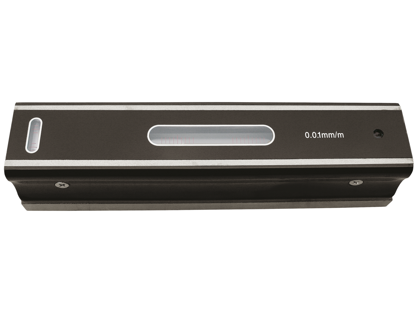 Kraftigt maskin-vaterpas til opretning og kontrol af plane- og cylindriske overflader. Præcisionsslebet og med V-spor og plan anlægssål, justérbar længdelibelle og fast tværlibelle. Aflæsning 1 Div = 0,1 mm/mtr. Leveres i trææske.