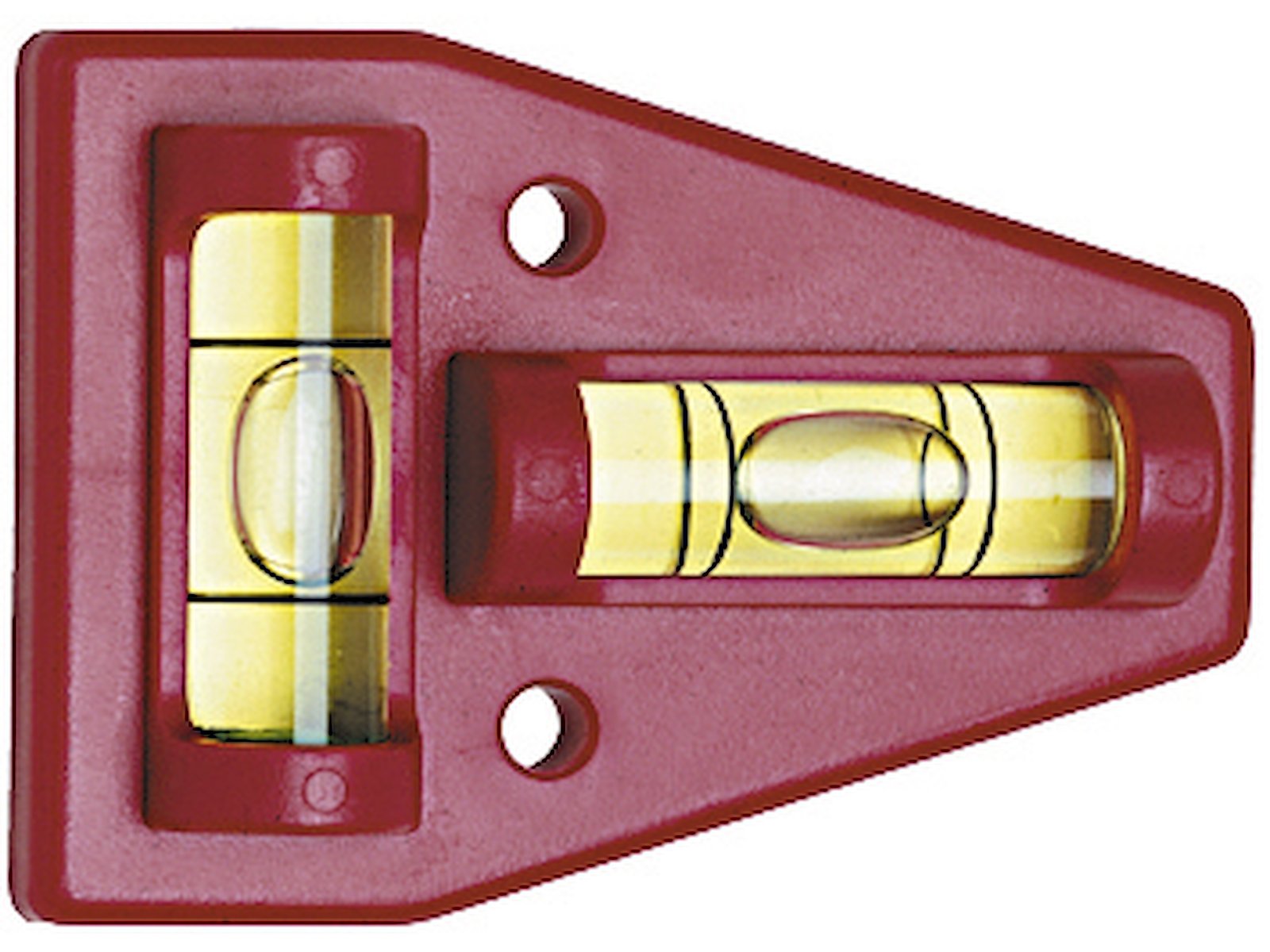 Krydsvaterpas i rød slagfast plast med to vinkelrette libeller. Velegnet til kontrol af hældning på to vandrette flader på samme tid. Fremstillet i ABS plast som gør vaterpasset både let og holdbart. Rørlibellerne er fremstillet i plexiglas.