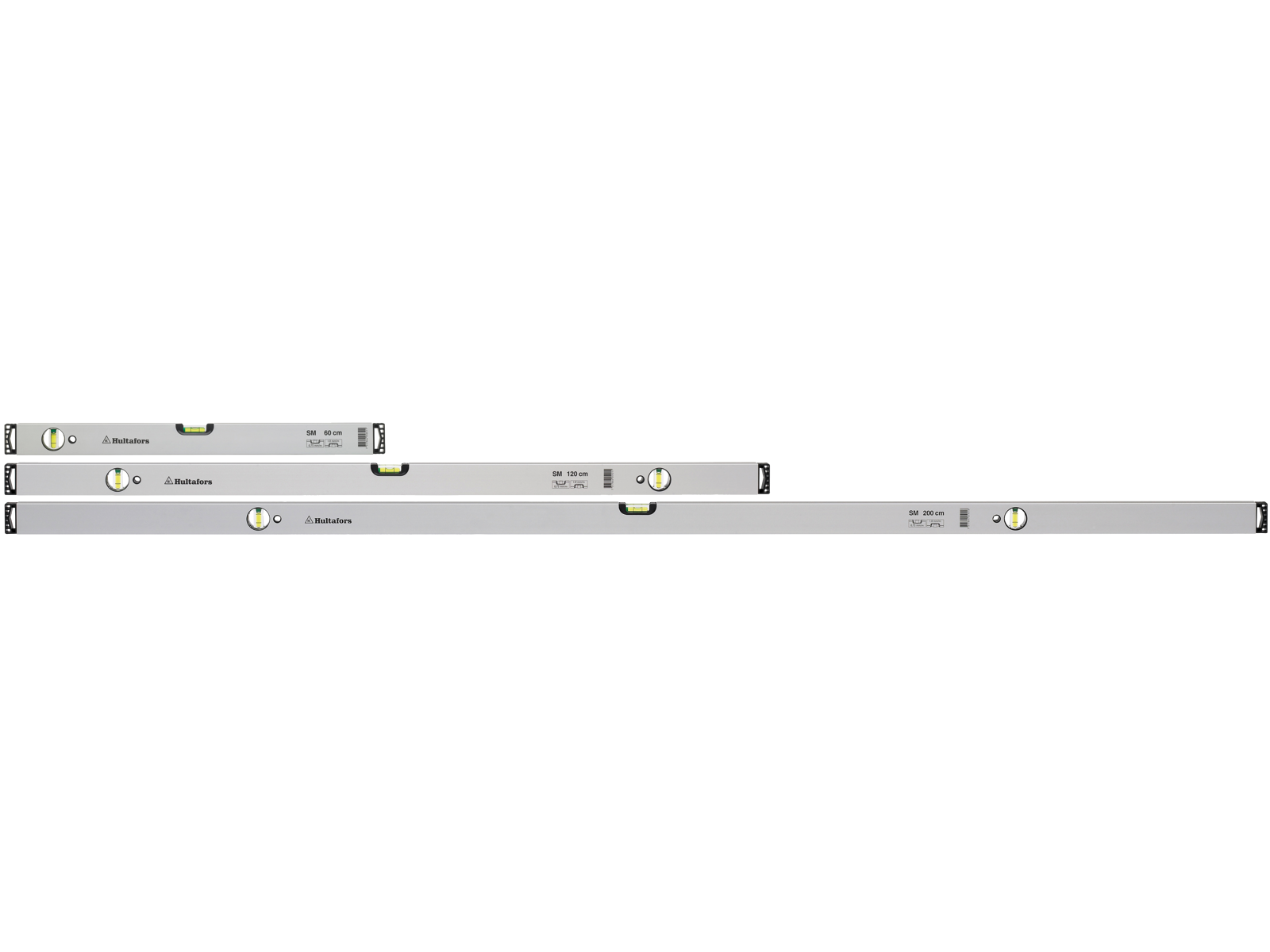 Vaterpas i aluminium sættet indeholder SM 60, SM 120 og SM 200. Aluminiumsprofilen måler 49×21 mm. Slagfaste bloklibeller med meget stor gennemsigtighed og holdbarhed. Libellens radie er 200 mm, hvilket giver en følsomhed på 10 mm/mtr. Tolerance i normal position ±0,75 mm/mtr, omvendt position ±1,0 mm/mtr. Væsken i libellen er en farvet, letflydende olieblanding, som giver boblen optimal bevægelse. Modstandsdygtig overfor ultraviolet lys og temperaturændringer. Boblen påvirkes ikke af statisk elektricitet, da væsken er antistatisk.