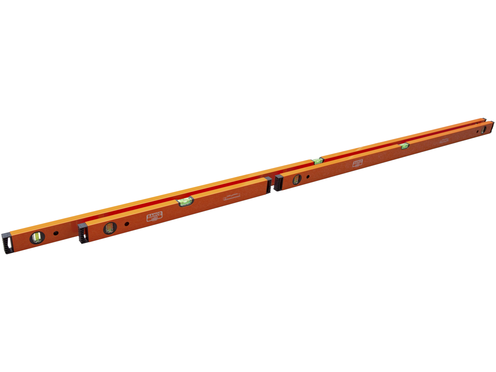 Vaterpas i sæt med 3 dele. 600 mm, 1200 mm og 2000 mm. Nøjagtighed på 0,5 mm/m i normal position og 0,75 mm/m i omvendt position. Aluminiumsprofil på 50 × 21 mm. Radie på libelle 200 mm, følsomhed på 10 mm/m. Let profil, vægt kun 520 gram pr. meter. 1,4 mm godstykkelse. Stødsikre libeller med farvet væske som gør den modstandsdygtig overfor ultraviolet lys, temperaturændringer og statisk elektricitet.