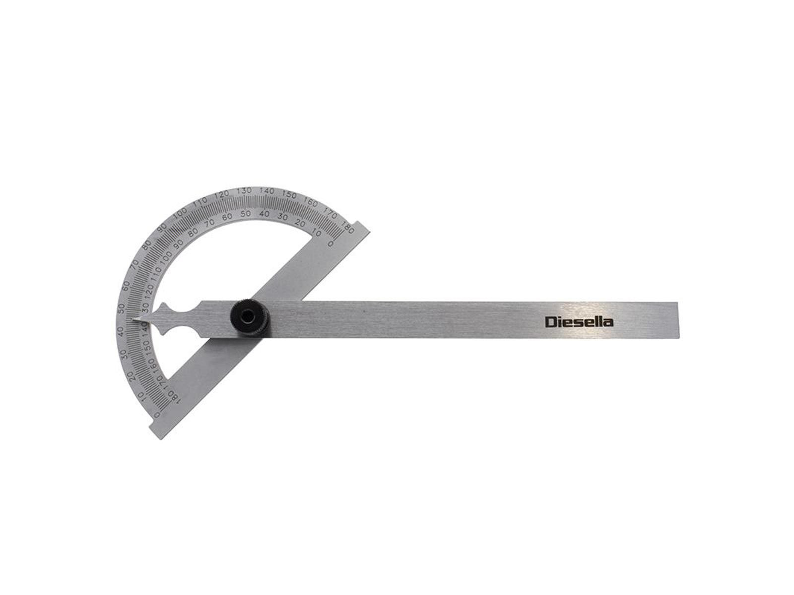 Med matforkromet dobbelt skala, måleområde 0-180°, matforkromet lasergraveret skala og fikseringsskrue.