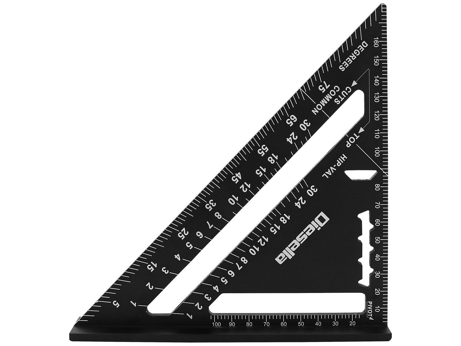 • Robust og alsidig speedvinkel i aluminium med CNC-bearbejdede kanter for større nøjagtighed og holdbarhed. Giver mulighed for at lave hurtige og præcise 45° og 90° markeringer, og vinklens tykke kant er anvendelig som savføring - den kan bruges direkte med saven mod firkanten til tværsnit eller vinklede snit. Brug indskæringerne til at lave en blyantstreg eller til at skære gips med en kniv. Endelig kan den bruges som vinkelmåler, for nemt at finde og markere forskellige almindelige vinkler. 0-90 grader, tolerance ± 0,06 grader.