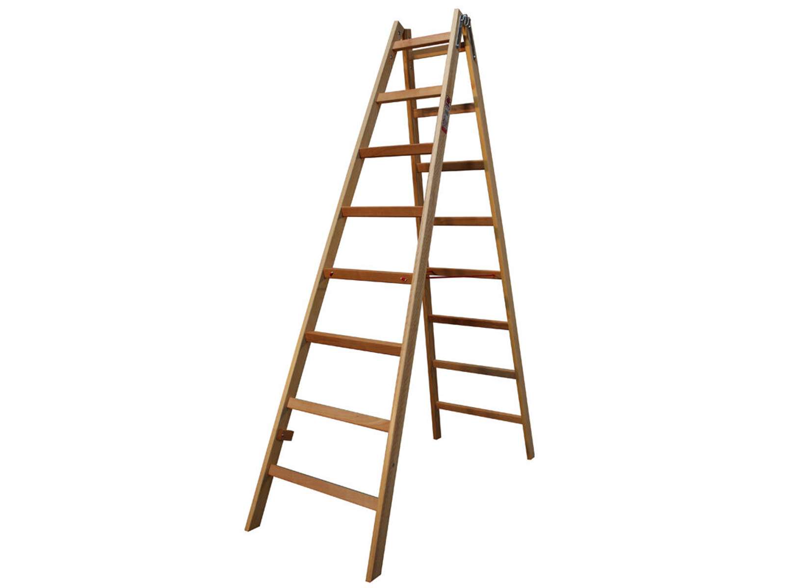 Træwienerstige med vanger i lamineret fyrretræ og trin i massiv bøgetræ.