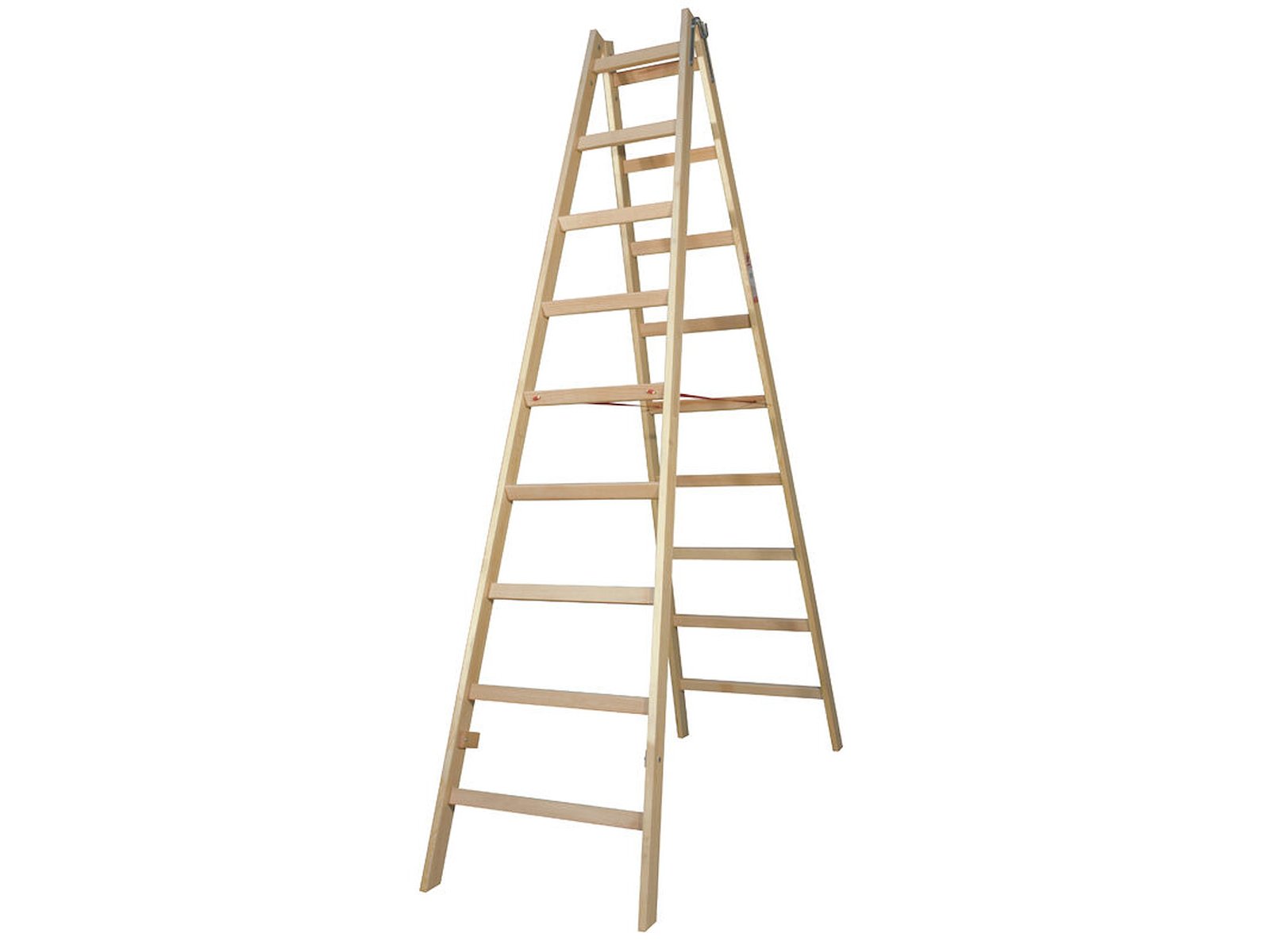 Træwienerstige med vanger i lamineret fyrretræ og trin i massiv bøgetræ.