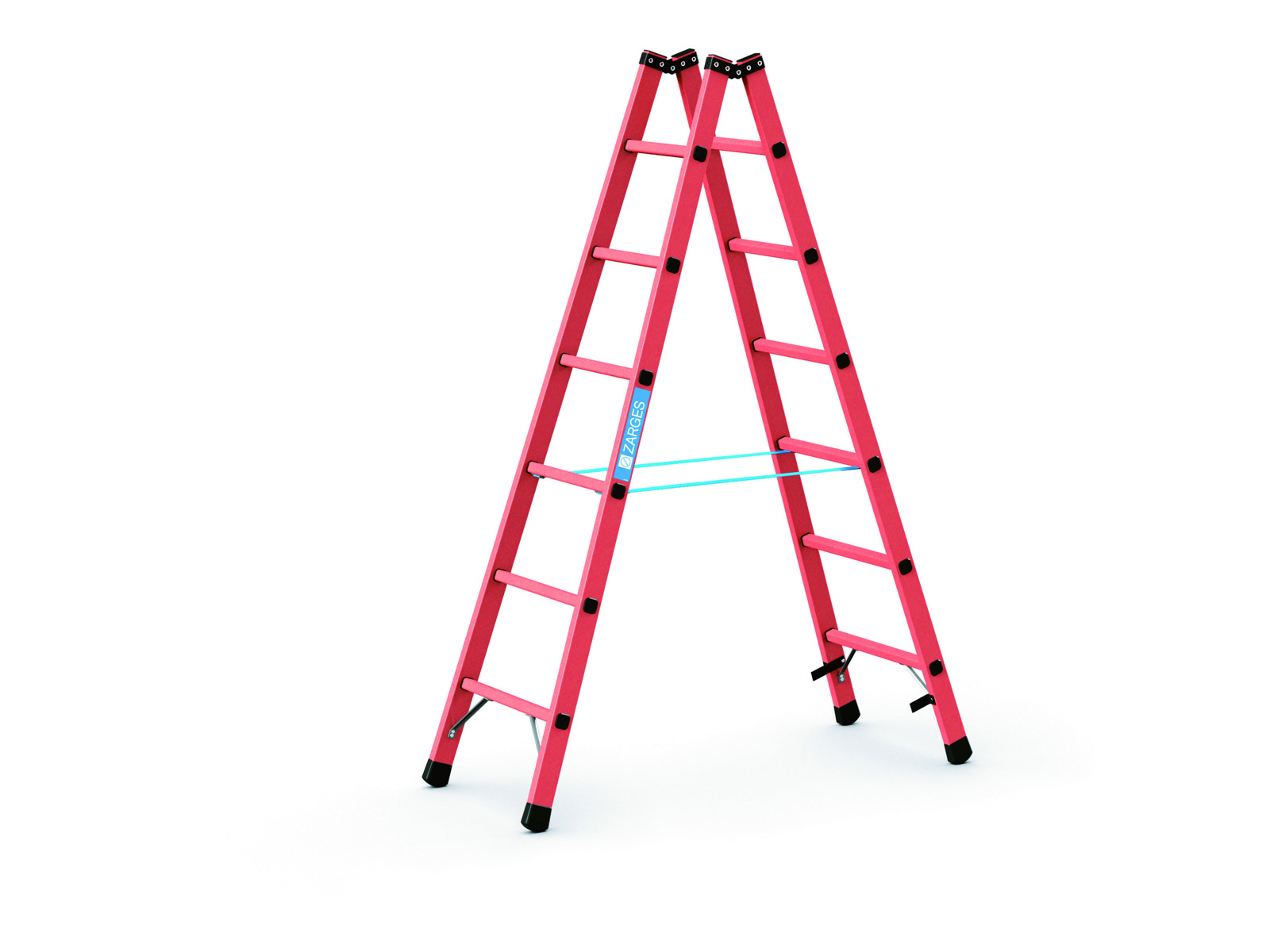 Begge sider (konisk) er forbundet med kraftige perlon-remme. Vangeender er forsynet med skridsikre stigesko. Udført i glasfiber forstærket polyester. Velegnet til arbejde med el og gas. Trinafstand 280 mm. Denne stige er særdeles velegnet til arbejde med strøm, i fødevare-industrien eller med salt og kemikalier.