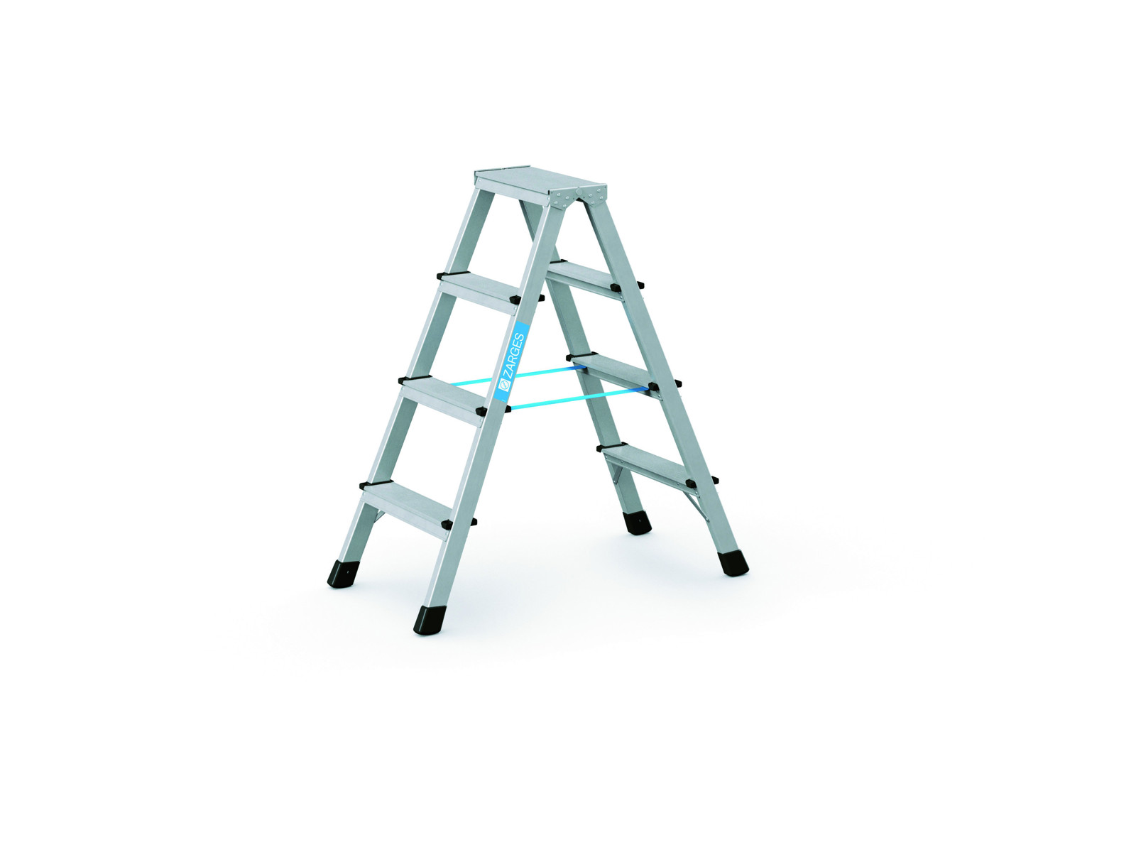 Begge vanger (konisk) er forsynet med kraftige perlon-remme. Vangeender er forsynet med skridsikre stigesko. Trinafstand 220 mm. Platform 300×170 mm.