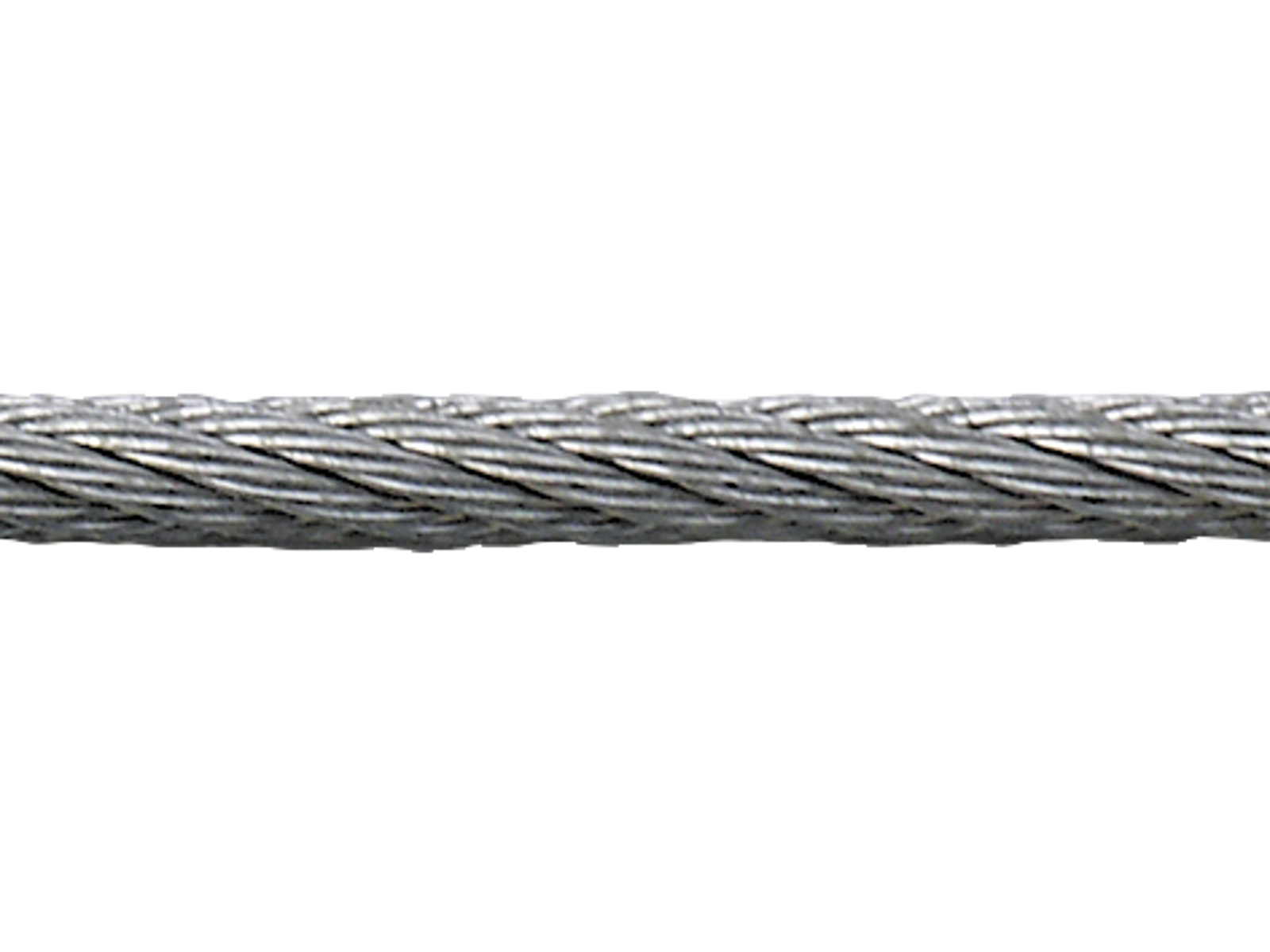 Relativ stiv 6×7+1FC stålwire med få, tykke tråde, stor slidstyrke og god holdbarhed overfor korrosion. Anvendes fx som stag og barduner. Ej til løft. Galvaniseret 2 mm stålwire.